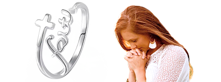 This ring features the word "Faith," symbolizing the power of belief and reminding the wearer of God's presence.